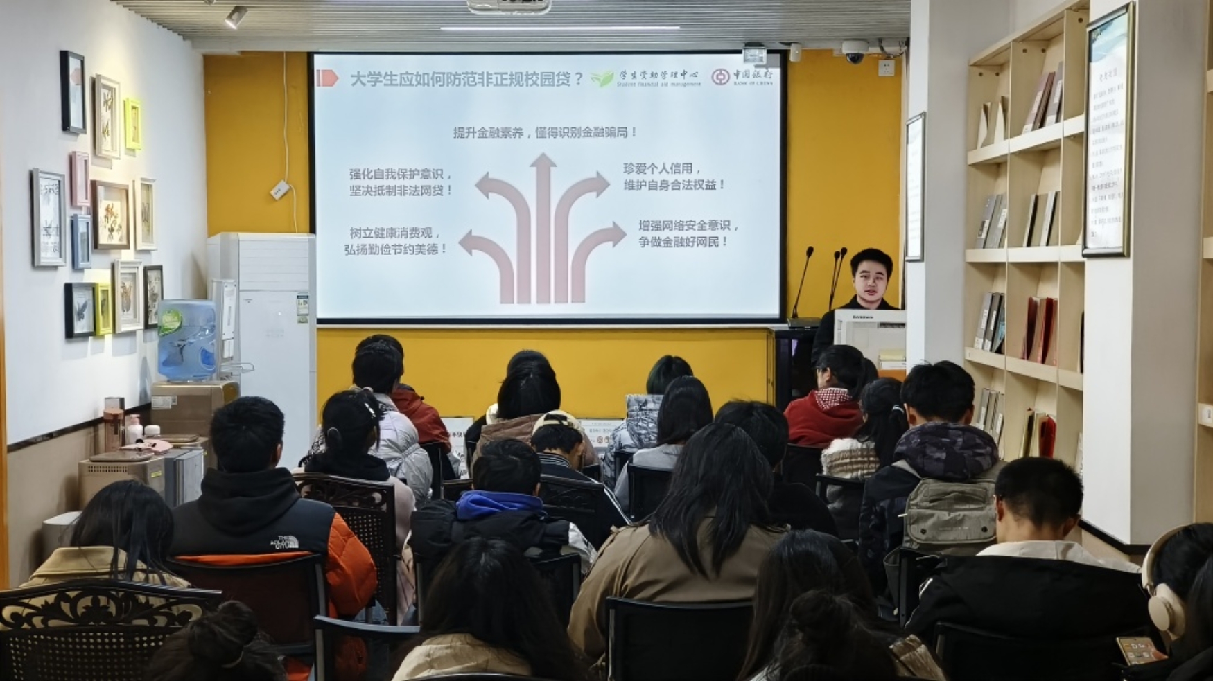 班会结束后,同学们齐聚西区中国银行共同学习金融主题讲座,讲座介绍了常见的诈骗手段、受骗案例与个人财产信息的保护,提醒同学们要防范日常生活中的诈骗,注意保护资产,不给有心之人犯罪的机会。