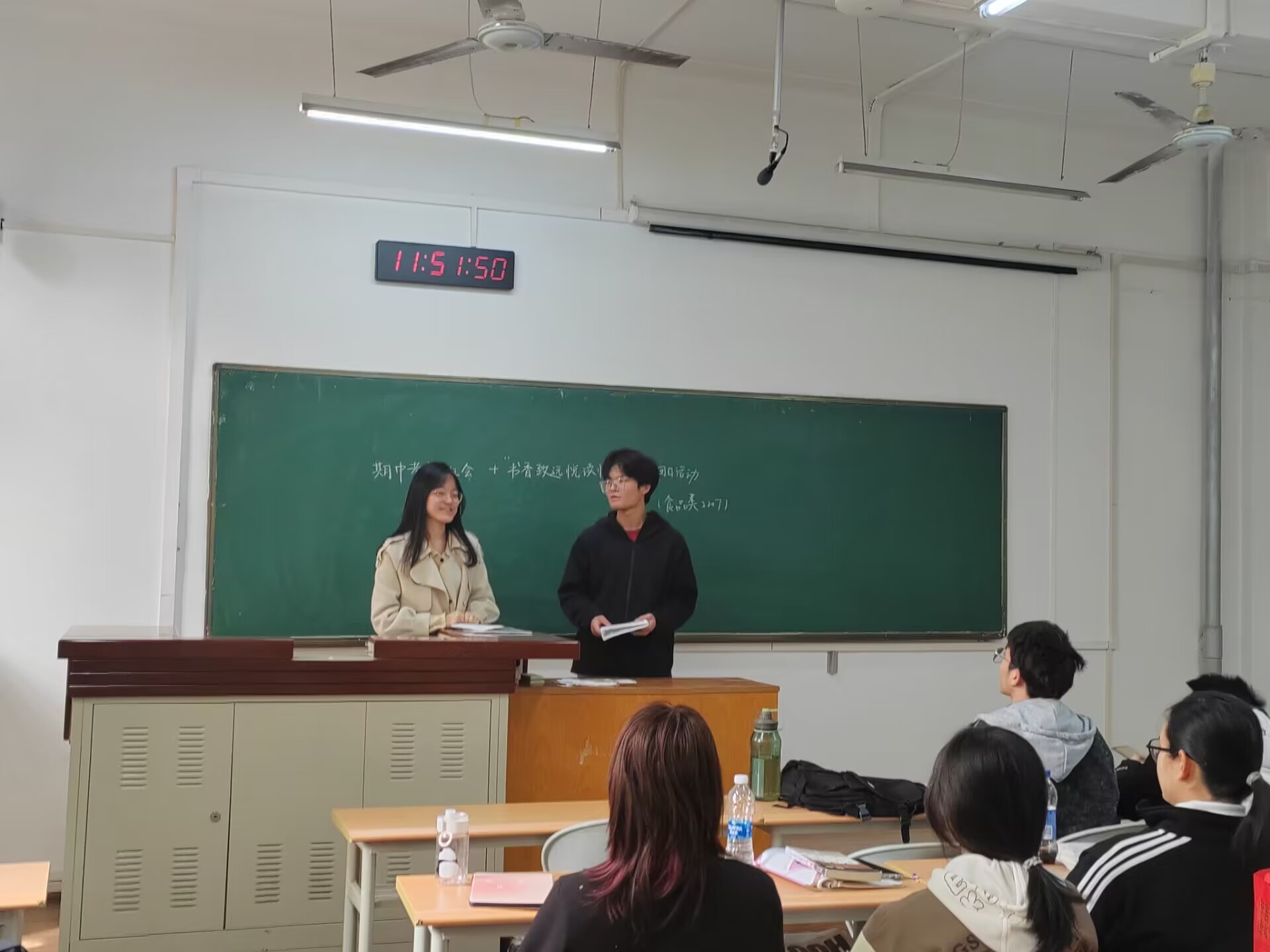 学风建设强调后,在团支书汪乐凡同学的主持下,食品2207班还进行了“书香致远,‘悦’读‘悦’香”为主题的团日活动。活动主要分为三种形式,班级全员都积极参与。一部分同学们选择了一段自己喜欢的话,朗读分享给全班同学,并把文字留存在书签上;还有同学分享了自己最近阅读的一本课外书,用一段话向大家介绍书籍的主要内容和推荐这本书的理由;还有同学喜欢绘画,选择了一段自己喜欢的文字,将其转译成为图画,在讲台前向大家简单介绍。食品2207班的同学们通过上台进行此次书香传播的分享,于此次书香活动中收获了很多。