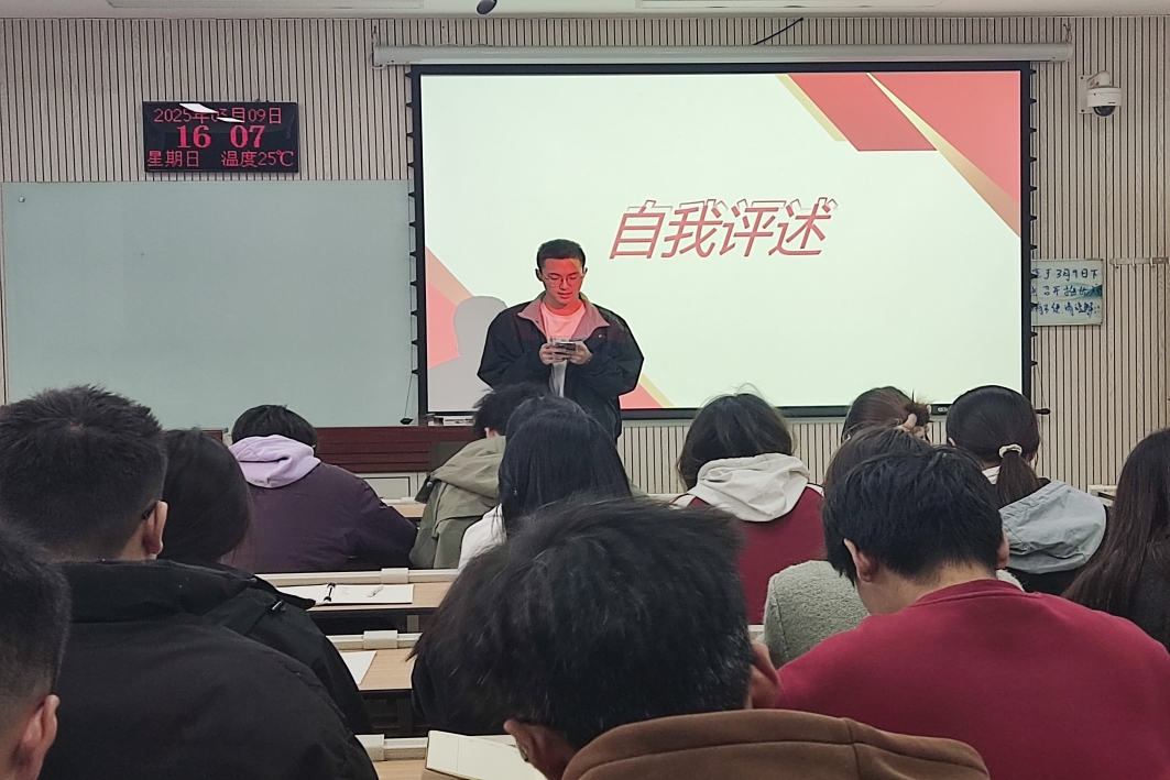 会议伊始,团支书王静怡同学详细介绍了入党积极分子推优条件,这些条件的明确,为推优工作的公正、公平开展奠定了坚实基础。随后在团支书的主持下,会议稳步推进。主持人先介绍了候选人名单及基本情况,让同学们对候选人有了初步了解。接着,候选人依次进行自我评述,分享各自的入党动机、思想成长历程以及学习生活中的突出表现,部分同学还借助精心准备的PPT充分展示自身优势。之后,参会团员以无记名投票的方式表达意见,按照规则,赞成人数达有表决权团员半数以上者便有机会进入考察阶段。