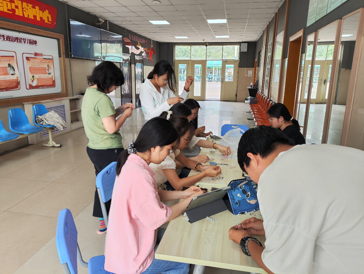 “友谊手链” 交换环节则为活动增添了温暖与欢乐的氛围。不少同学们完成自己的串珠作品后主动与同伴进行交换,大家佩戴着独一无二、意义非凡的手链合影打卡,定格美好时光,现场欢声笑语不断。“只有动手了才发现从设计到制作都需要耐心和巧思,但是看着自己亲手完成的作品,又特别有成就感!”活动现场的同学这样说。