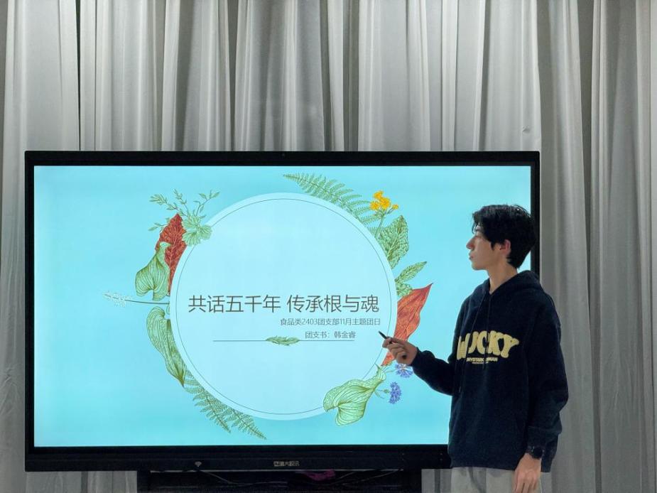 为深入学习贯彻习近平文化思想,组织动员团员青年加深对中华优秀传统文化的传承发展,11月18日,食品2403团支部在图书馆二楼廉政厅开展了“共话五千年,传承根与魂”主题团日活动。此次活动由团支部书记韩金睿主持,食品2403团支部全体同学参加。
