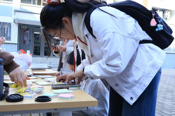 在“心愿便利贴”环节,同学们领取便签后,或书写对校园生活的期待,或留下对陌生人的暖心祝福。一张张色彩鲜明的便签被精心贴于展示板,成为“一站式”社区中一道温暖风景。打卡区前人头攒动,同学们纷纷与专属祝福合影,定格这份双向奔赴的温暖。“没想到能收到陌生人的暖心鼓励,瞬间觉得校园生活更有温度了。”参与活动的王洋同学说道。
