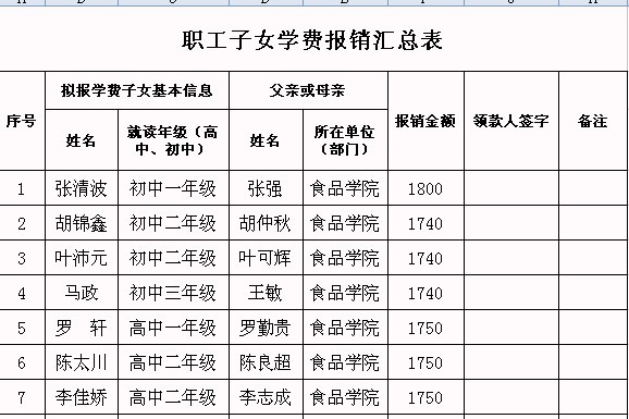 各位教职工: 公司拟对本学期就读于高新中学的公司正式职工子弟的学费予以报销,现将需报销子女学费的公司教工名单及报销金额公示如下,如有异议,请与公司行政办联系。公示期:10月26日-28日。