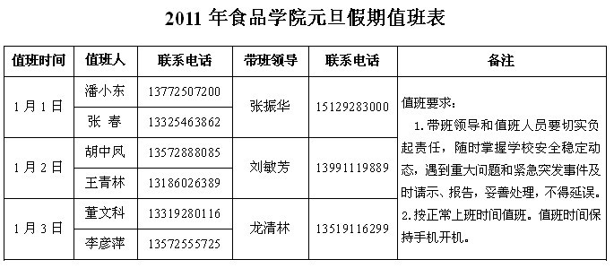 根据《国务院办公厅关于2011年部分节假日安排的通知》精神,公司元旦放假时间为:元月1日―3日放假,元月4日(星期二)正常上课、上班。