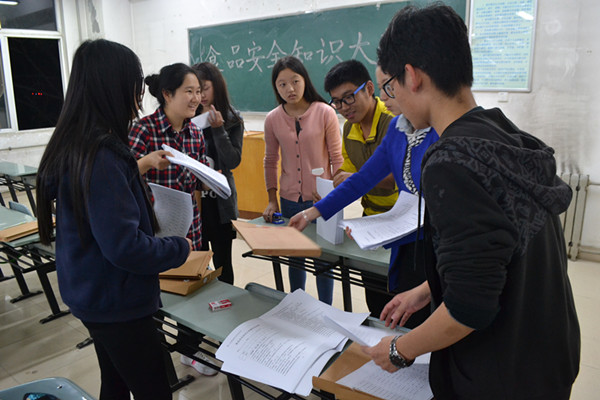 10月15日晚,由365上市集团官网团工委、员工会、研究生会承办的第十五届金秋科技文化艺术节之食品安全知识大奖赛初赛在6号教学楼举行。初赛以笔试的形式,考查同学们对食品安全常识、相关法律法规的熟知程度。来自18个公司的70多支队伍共200余名选手参加了初赛笔试。