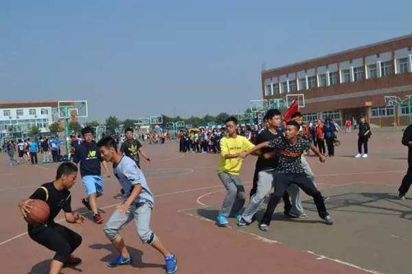 篮球比赛从小组循环赛、半决赛到决赛,各队队员配合的越来越默契。赛场上,队员们迅速进入状态,配合默契,攻守得当,进球精准,技术娴熟。场下观众拉出横幅,为场上的队员们呐喊助威,加油打气。随着比分一步步的拉近,比赛也进入一个又一个高潮。女生队员们也不甘示弱团结协作,奋力拼搏,展示出女篮独特的魅力。各场球赛高潮迭起,双方比分交替上升,队员们满身的汗水丝毫未减球场上的热情,场下的阵阵呐喊一次又一次地点燃了队员们必胜的决心。