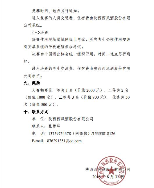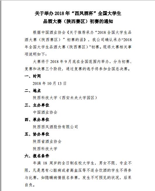 关于举办2018年”西凤酒杯“全国老员工品酒大赛的通知