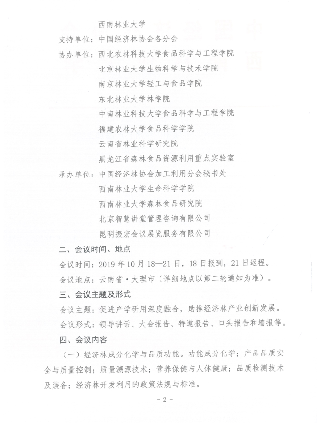 关于召开第二届中国经济林产品加工利用科技研讨会的函