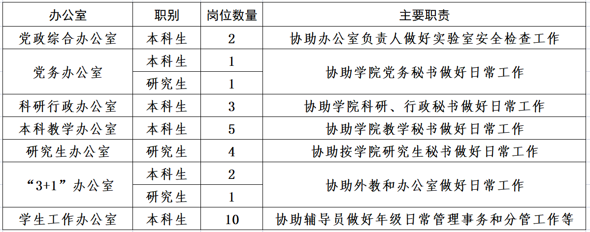 (3)岗位要求:所有勤工助学岗位均能按时保质完成办公室老师或相关教师所布置任务。